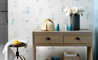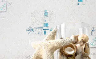 Die Bad-Motive begeistern mit maritimen Leuchttürmen, Seesternen, Herzmuscheln und kleinen Fischen. Für den Küchenbereich stehen Kaffee- und Esskultur im Focus.