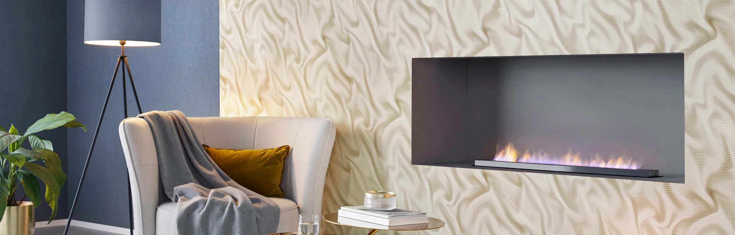 High-quality embossed wallpaper made up of two layers of paper back against each other. The embossing remains stable during papering.